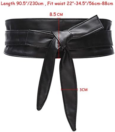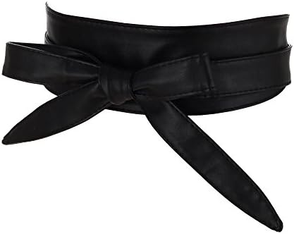 Aecibzo Women’s PU Leather Self Tie Wrap Around Obi Waist Band Cinch Boho Belt