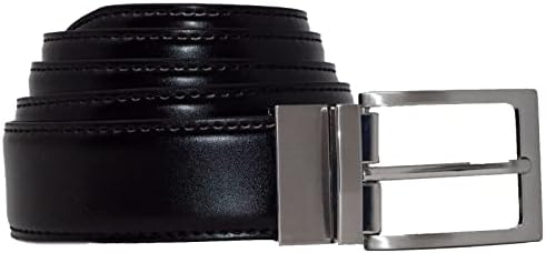 This 34mm coated leather reversible belt has a feather stitched edge for added strength and a smooth finish and looks great with suit trousers. It is available in 4 different sizes and comes in a matching Ashford Ridge gift box. To reverse the belt simply hold the end of your buckle in one hand and the belt in the other and give a slight pull and then twist. To change back simply reverse the procedure. If the belt arrives and the buckle has been knocked a bit loose in transit simply open up the teeth with a knife, push the belt in to the teeth and close. SIZING – VERY IMPORTANT – PLEASE READ This belt is available for the following waist measurements: Medium – 32” – 36″ (80cm – 90cm) Large – 36″ – 40″ (90cm – 100cm) XL – 40″ – 44″ (100cm – 110cm) XXL – 44″ – 48″ (110cm – 120cm) PLEASE NOTE – THE SIZE OF YOUR JEANS/TROUSERS IS NOT NECESSARILY YOUR WAIST SIZE and many trousers do not sit on your waist but slightly lower therefore it’s important to take the measurement with your trousers on and where the belt is intended to be worn i.e. the measurement may be nearer your hip measurement than your waist. If you are unsure of which size to buy we would always suggest ordering a slightly larger belt rather than one that might just fit as you can always add an extra hole but you can’t extend the length of the belt. This belt is very easily shortened so if you buy a belt that is too large simply message us and we can explain how to shorten.