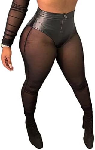Avanova Women’s Sexy Mesh Patchwork Leggings See Through High Waist Long Pants Sheer Mesh Bodycon Pants Clubwear Tights