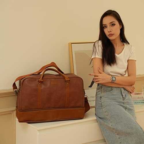 Vegan Leather Travel Duffel Carry On Weekender Overnight Bag for Men and Women