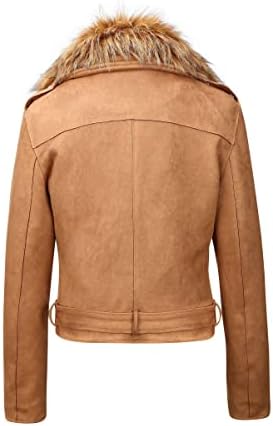 Multipurpose: Women faux suede leather jackets, full faux fur lining, asymmetric front zip closure, moto biker overcoat. Suitable to match with jeans, sweater, T-shirt, leggings, crop top, black slacks, shorts, skinny pants, bodycon dress, vest, skirt, shacket, knee high boots or high heels for a for a beautiful glamorous and gorgeous appearance.