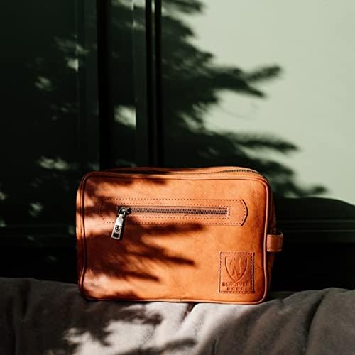💪MADE TO LAST. The Paul cosmetic bag measures 10.6×7.5×3.9inches LxWxH and is made of 100% genuine leather and lined with soft cotton. This vintage style dopp kit is made to last, with sturdy stitching, 100% metal YKK zippers, and Berliner Bags branded pullers