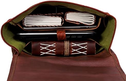Comes with Steel buckles , 100% rust free. adjustable sling. Vertical leather laptop bag Can hold 15″ Laptop.