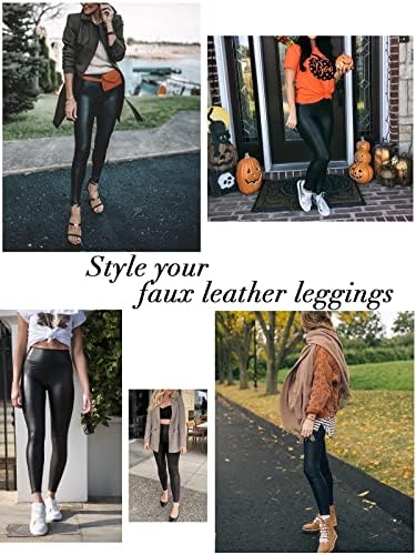 Black leather leggings features high waisted, tummy control,wrinkle-free, stretchy, ankle length,slim fit and non-see through.