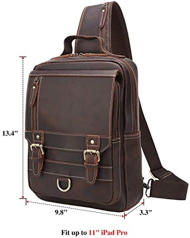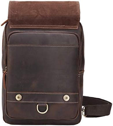 compalo Thick Full Grain Leather Sling Bag Shoulder Backpack Travel Rucksack Casual Crossbody Bag