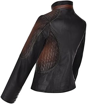 Jacket for women in ovine leather. It presents padded applications in contrasting color, metallic applications and handwoven details. With application in contrasting texture in the front and mao collar. Adjusted with frontal zipper.