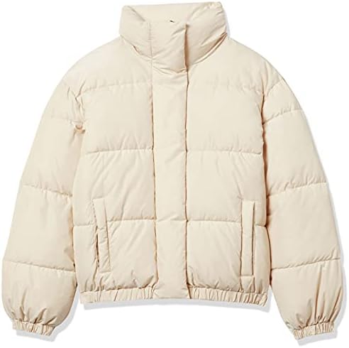 An Amazon Brand – Cold weather style is easy with this mock-neck short puffer jacket