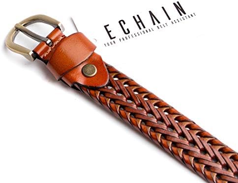Basic traditional braided belt? not so basic now. ECHAIN elevated the simple everyday wear to a completely new higher standard, extra refined quality of leather and Simple and unique silver gray pin buckle, add a casual fashion trend.