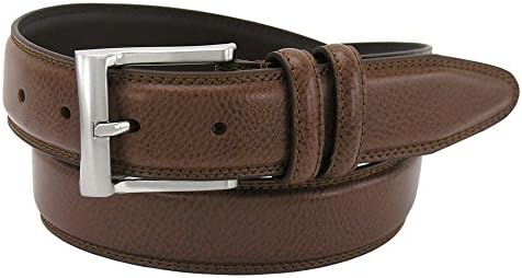 Pebble grain leather belt 32mm with brushed and high polish buckle. Double stitched edge with double leather keepers