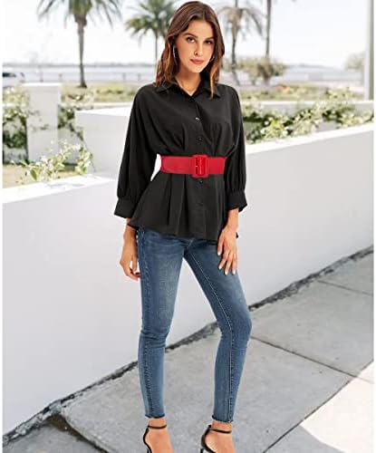 💝 Great Stretch & PU Leather: The high grade PU leather allows soft touching and long time use. The behind wide elastic waist band has great stretch and will feel no bounding in your waist. The retro wide belt makes your clothes eye-catching, makes your waist look slim, and makes your figure look more slender and elegant.