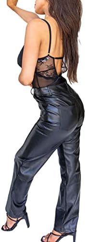 【Feature】High wasit, zipper closure, front and back pockets, PU leather, solid color, black leather pants straight leg,relaxed fit makes it fits for many body shapes(Warm tip: belt is not included.)