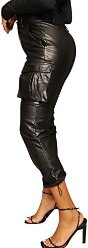 【Features】- Sexy Black Leather Pants Women – High waist, with two pockets, and 2 side pockets, wide leg pants,BOTTOM elastic drawstring closure.