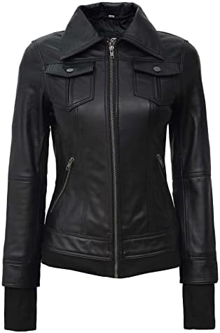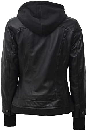 ► Front: Zip Closure, Detachable Hood, Multiple Pockets with internal Polyester lining are key features of womens fitted black leather jackett. Wear it over dresses and jeans alike to instantly elevate your look.