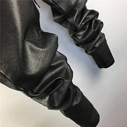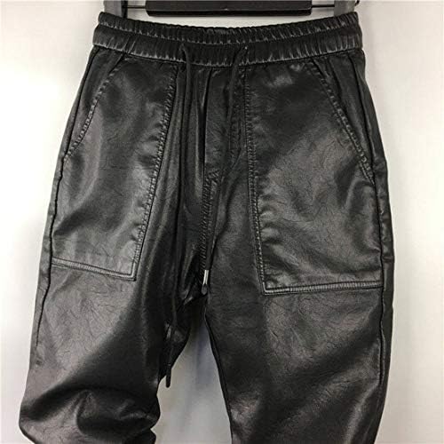 FEATURES: Elastic Waist, Drawstring, Ankle Cuffed, Large PocketsMaterial: 100% faux leatherComfortable Tapered Fit: leather joggers with sports comfort elastic waistband and cuffed ankle
