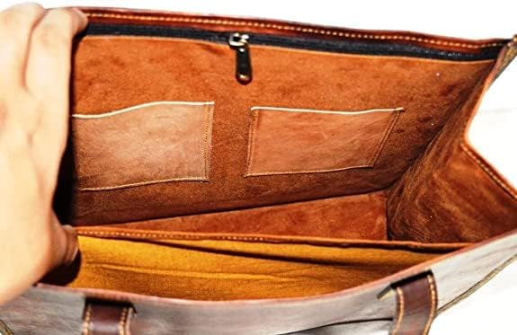 GENUINE LEATHER : Premium Goat Hide Leather, Natural and Beautifully Handcrafted; Oil-Rubbed for Distressed and Vintage Looks, This Laptop Bag Improves with Age & Smells Just Great!