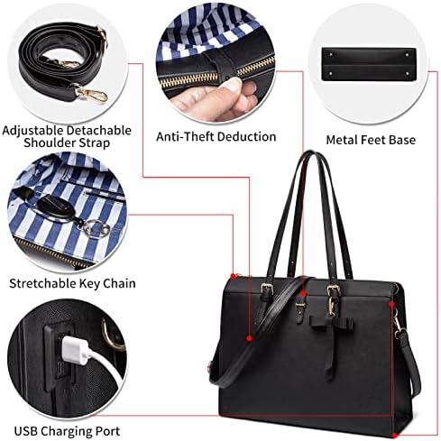 USB Charging Port & Retractable Key Holder:Laptop Tote Bag for Women come with usb charging port and detachable card keychain badge holder The USB charging port helps you charge your phone while walking or shopping conveniently.