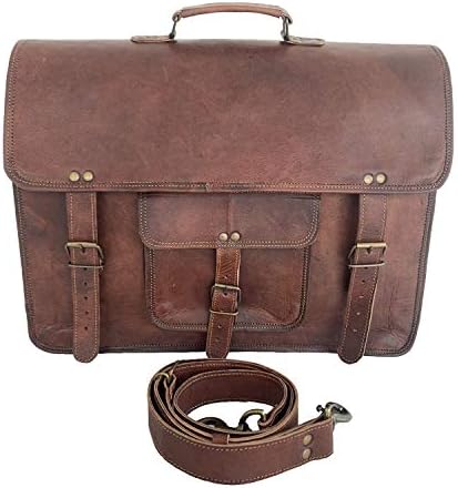 FULL GRAIN LEATHER: Our bags are made from full-grain leather and lined with durable canvas and are Handcrafted by skilled craftsmenCONVENIENCE AND SAFETY: With Concealed locks under the straps our bags are easy and fast to open and lock. The removable and adjustable shoulder strap gives an option to carry as a shoulder bag or a briefcase. With a lockable inner chamber, No need to worry about spilling any contents.STORAGE: With Size 18″ width x 12″ height x 5″ depth ( Fits laptops up to 15.6 inches), with One big pocket in front for files/folders and a small pocket in front for cell phones etc plus 2 zipper pockets including one at the back, this bag fits almost everything you need to carry to office, college, school or even an overnight tripEVERGREEN SCHOOL BAG DESIGN: Now this is one design which can never go out of style. Besides this leather has a characteristic that ages wonderfully with use which makes the bags look vintage and unique.PERFECT GIFT: With a multipurpose use and a classy distressed Vintage-inspired look which never goes out of style, This bag is a great gift idea for Father’s Day, Birthdays, Valentine’s Day, Christmas, Graduation, Back To College Or Any Occasion Which Calls For A Gift.