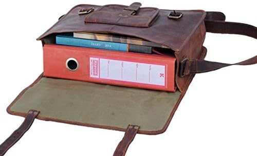 FULL GRAIN LEATHER : Our bags are made from full grain leather and lined with durable canvas and are Handcrafted by skilled craftsmenCONVENIENCE : With Concealed locks under the straps our bags are easy and fast to open and lock . Removable and adjustable shoulder strap gives an option to carry as a shoulder bag or a briefcase.STORAGE : With Size 15″ width x 11″ height x 4″ depth ( Fits laptop upto 15 inches) , with One big mail compartment for files/ laptop. 2 Zipper Compartments including one back zipper and one small front pocket, this bag fits almost everything you need to carry to office, college , school.EVERGREEN SCHOOL BAG DESIGN : Now this is one design which can never go out of style . In addition this leather as a characteristic ages wondefully with use which makes the bags look vintage and unique .PERFECT GIFT :With a mutlipurpose use and a classy distressed Vintage inspired look which never goes out of style , This bag is a great gift idea for Fathers Day , Birthdays , Valentines Day , Christmas, Graduation, Back To College Or Any Occasion Which Calls For A Gift . Makes a great gift for professionals, artists , students and all sorts of officials. The bag can be used as a Leather messenger bag for men and women ,laptop bags briefcase , college bag, meeting bag, gift idea.