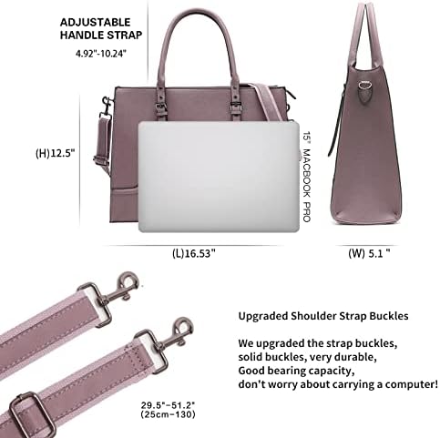 Upgraded Laptop Bag for Women: We upgraded the laptop bag zipper and strap, more durable than before. If you want something special only for you, something which can be multifunctional and stylish same time, this 15.6 inch computer bag is a good choice for you! Teacher bag crafted in charming lilac saffiano grained eco-leather to have a ladylike yet versatile style. By switching between the top handle and optional shoulder strap, 2 ways to carry this work bags