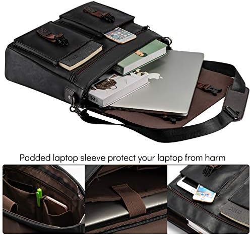 【Various pockets roomy】Mens satchel bag features More than 9 pockets which can hold your essentials separately and keep things organized,1 padded part for laptop, 1 large main compartment with main secure zipper closure, 2 inner pockets, 1 long zipper pocket,2 Middle pockets,External 1 diagonal zipper pocket and 1 back pocket with zipper for significant articles.