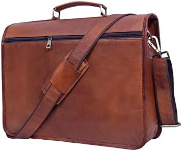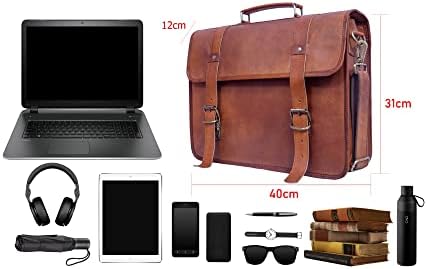 Get easily organized with 2 + 1 compartments, 2 inner zipped security pocket, Back side one zipper pocket . ideal for small laptops amp; tablets, For those long journeys away, the shoulder strap on this leather laptop bag is fully adjustable .; 16 Inches Wide 12 Inch High 5 Inches Depth. Fits Up to 15 inches Laptops with enough room to carry other items like I pad tablet, Chargers, Folder, notebooks and cases. Wide strap making it comfortable to carry on shoulders.; Perfect for – Messenger Bag For Men Leather, Messenger Bag For Women Leather, Leather Messenger Bag Laptop bag leather , Leather Bags , leather Laptop Bag For Men; Strong amp; Durable: Brass Fittings amp; Buckles, YKK Zippers, Elegant Heavy Duty Lining … Built to Last: This leather satchel features quality stitching, brass buckles amp; strong zippers. Ultra-durable, reliable amp; secure. Even has heavy-duty canvas amp; Velcro strap to protect contents.; Item weight: 1.0 kilograms ;
