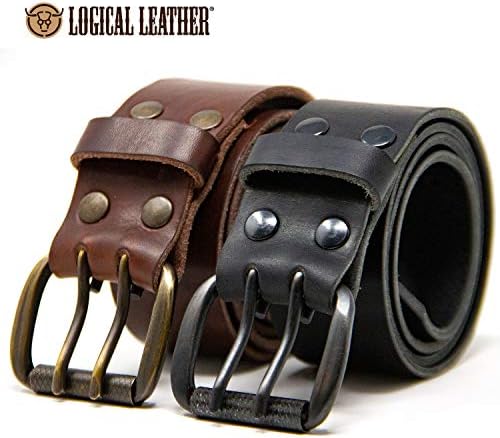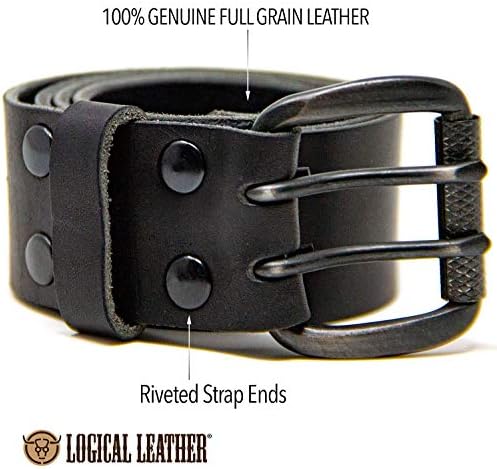 Logical Leather Men’s Work Belt – Heavy Duty Genuine Full Grain Leather Double Prong Belts