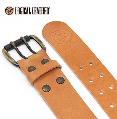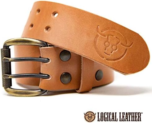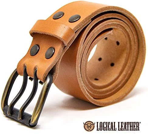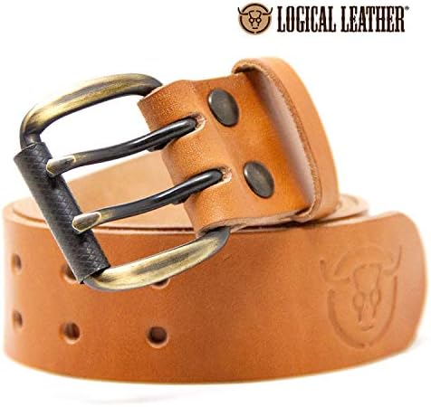 Logical Leather Men’s Work Belt – Heavy Duty Genuine Full Grain Leather Double Prong Belts