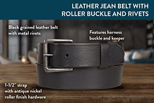 Lucky Brand Men’s Smooth Leather Jean Belt with Roller Buckle and Rivets.