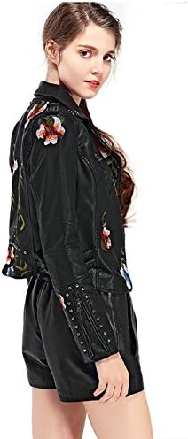 Beautiful embroidery floral print jacket coat, short faux leather coat with long sleeves