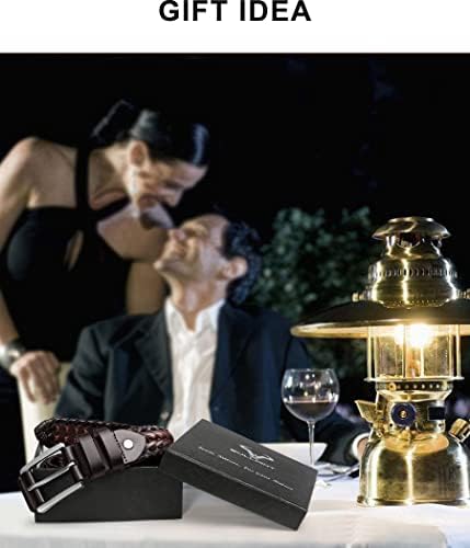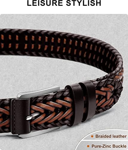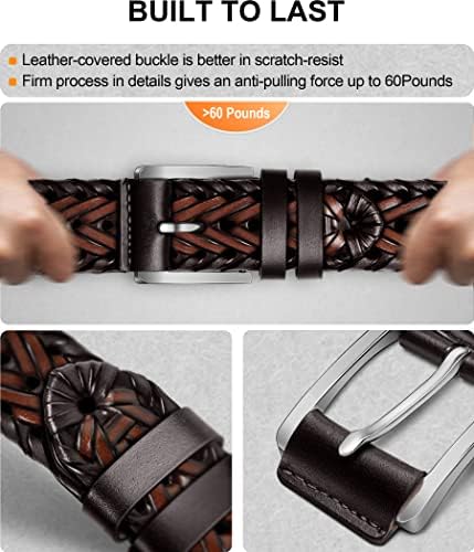 Woven Braided Belt of Genuine Leather,Unisex for Men or Women,Width 1 3/8″;