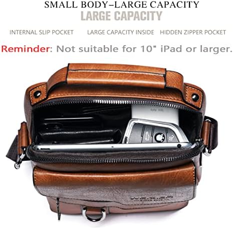 Structure: Mens Crossbody bag make it got a huge capacity. Multiple pockets meets your daily needs and keep your belongs organized. has enough space for carrying up your Ipad, umbrella, phone, keys, walet, power bank, books, etc.