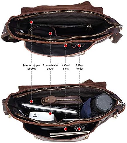【Durable Genuine Leather】Unlike other leather man purse uses faux PU leather, our leather messenger bag for men is made of premium 1.8mm thick full grain cowhide leather, processed with crazy horse tech, the bag reserves the natural texture of genuine leather, and is added remarkable durability for decades. It is distinguished with retro weathered look at first, but gets shinier after use, the more you use the bag, the “newer” it will look. Thus, crazy horse leather bags are popular.