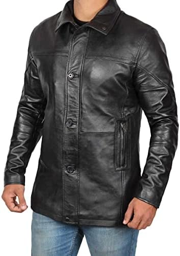 Mens Leather Car Coat Black – Real Lambskin Leather 3/4 Length Brown Carcoat Winter Jackets For Men