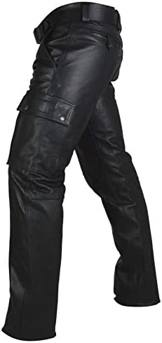 MEN HOT CARGO STYLE REAKL BLACK COW LEATHER SLEEK & SEXY JEANS PANTS BIKER Trouser,