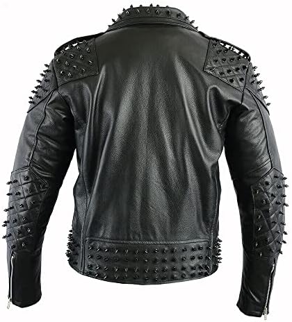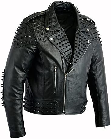 Welcome to our famous Marlon Brando style studded leather jacket, constructed with soft & lightweight sheepskin leather. We added a fashionable modern touch to this most famed vintage jacket exclusive to us! This popular design was originally showcased in the movie classic of the 50’s “The Wild One” the star actor Marlon Brando can be seen rocking this stylish design in various scenes, after the many years passed but it’s still a popular design in today’s era. We’ve kept all the key features of that design however some modern features have been added to suit the roads of today. Technical specifications: Made from 100% sheepskin soft & lightweight jacket available in black color made with leather added metal stud for modern fashionable touch. Studs placed on front, back, shoulder and elbow; zipped adjustable cuffs YKK zip brass style buttons two front zip pockets 1 right inner pocket
