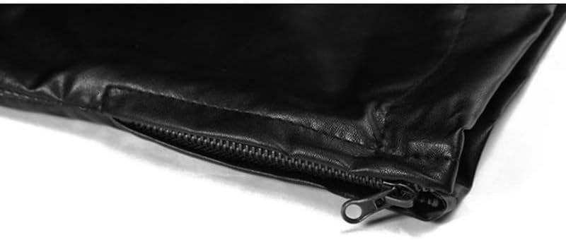 Mens Tight Waistless Pants Zipper Placket Daily Leisure Sports Leather Middle Trousers for Parties, Dances