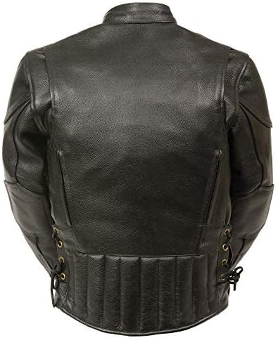 Features Made of Premium Grade 1.1-1.2mm Thick Leather Front Zipper Closure Snap Collar Closure Side Lacing for Optimal Comfort Lower Padded Back Kidney Two Chest and Back Vents Full Action Back Shoulder Panel Elbows and Shoulder Have Added Padding for Extra Protection Two Outside Pockets with Zipper Closure Zippered Cuffs Genuine YKK Zippers -Known for Longevity and Durability