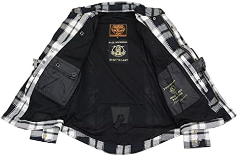 Milwaukee Leather MPM1644 Men’s Black and White Armored Long Sleeve Flannel Shirt with Kevlar
