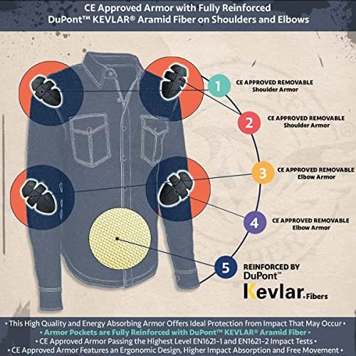 ✅ CE APPROVED ARMOR : Removable CE Approved Armor on Both Shoulders and Elbows (Included) + Armor Pockets are Fully Reinforced with DuPont KEVLAR Aramid Fiber + CE Approved Armor Passing the Highest Level EN1621-1 and EN1621-2 Impact Tests + Optional Back Padding Available: Part # MP7904