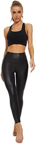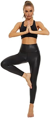Faux Leather Leggings for Women:4 way stretchy and butter soft fabric, provides maximum range of motion during workout and daily wear.