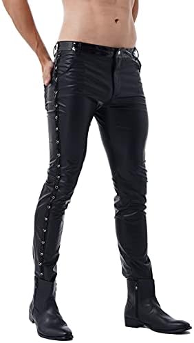 Men’s Faux Leather Pants Punk 80’s Rock Skinny Leggings Gothic Tight Motorcycle Biker Pants