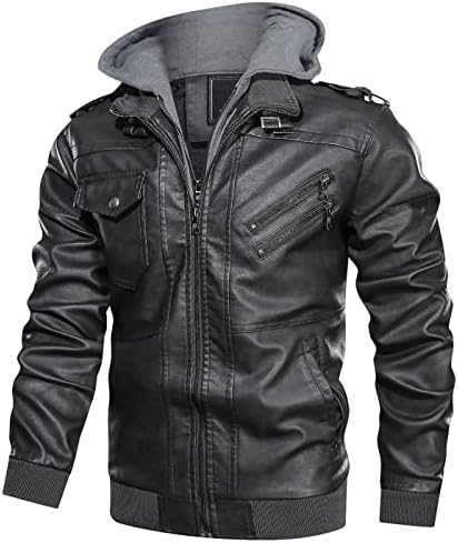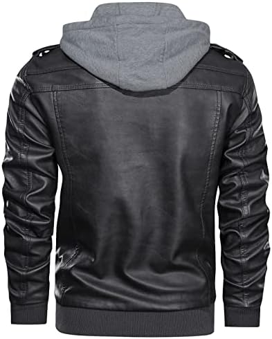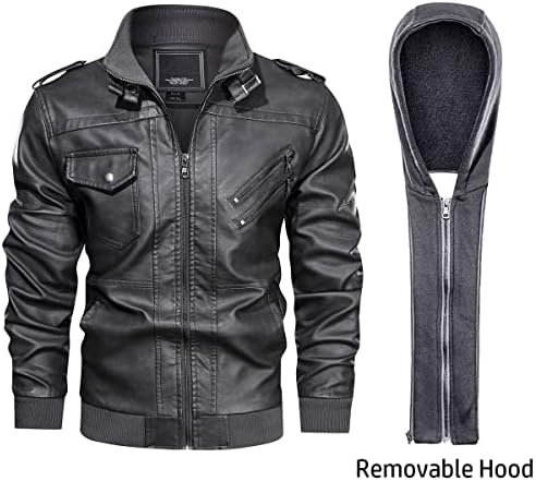 NAVEKULL Mens Faux Leather Jacket Winter Vintage Motorcycle Biking Jacket with Removable Hood
