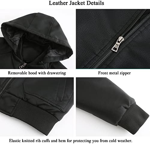 Functionality: Perfect stitching design with good tailoring brings a long-lasting jacket to you; Removable hood is convenient for you to change different looks between a stylish hooded motorcycle jacket and a casual stand collar bomber leather jacket.