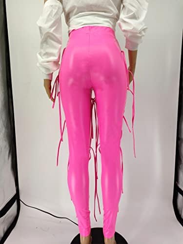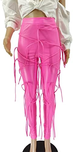【Feature】:Faux leather leggings for women,high waist with wide elastic band,tapered shape,bodycon,stretch fit,butt lift,solid color and glossy,ankle length,flowy leather strings ornament,shiny leather legging,tassels pencil pants.