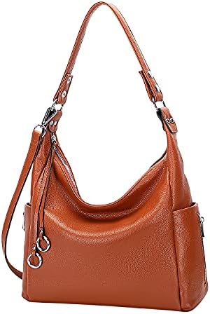 Material–This Women shoulder Hobo bag made of genuine leather,there is clear leather grain and pebble on the surface; Durable brown color polyester lining; High quality silver color tone hardware. Four bottom studs for protecting your bag from abrasion.