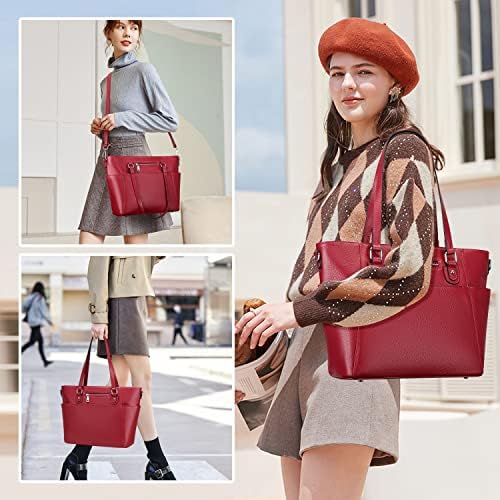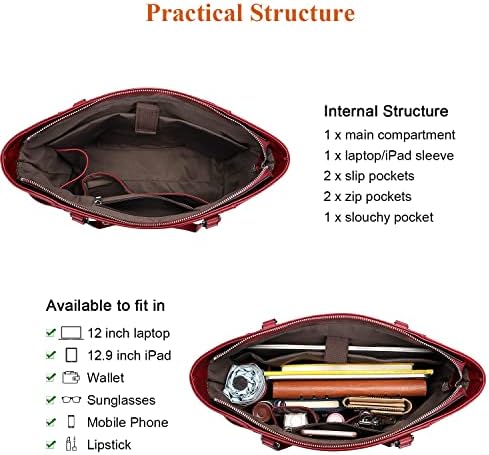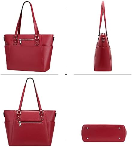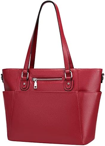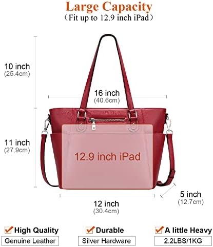 GENUINE LEATHER: This womens tote bag made of genuine leather (top grain cowhide leather), with pebble texture. Premium silver metal hardware, durable poly lining. Bottom with 4 rivets for protecting your handbag away from abrasion.