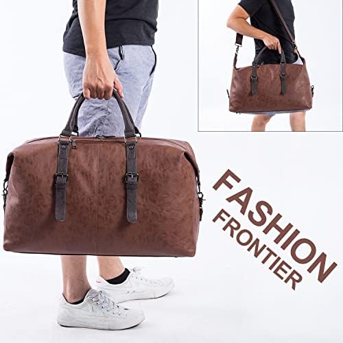 【High Quality Material】The duffel bag is made of top quality PU leather,Thickened leather and lining,the leather material won’t rip or tear when you put a lot inside of the duffle tote.
