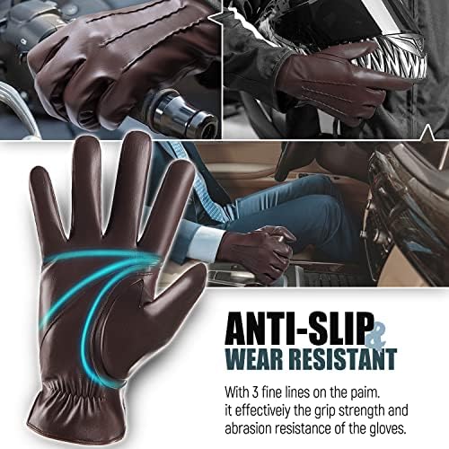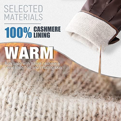 【Top-Quality Material】 Winter Leather Gloves for Men are made of upgraded top faux PU leather with softness of touch, suppleness, strength and lasting comfort, feel just like genuine leather. it features softness of touch, suppleness, strength and durable. The inner lining of the gloves is Italian cashmere, which is super soft and comfortable, keeping your hands warm all day long!