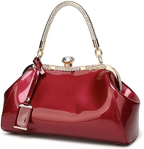 ROUROU Glossy Patent Leather Handbag for Women Top Handle Tote Bag Evening Shoulder Bag Wedding Satchel Retro Purse