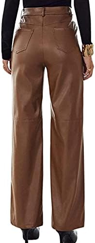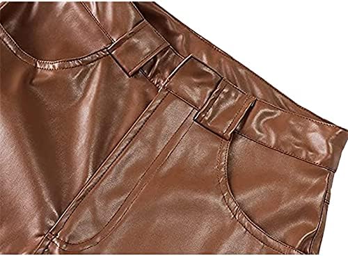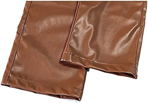 Feature: high wasit, zipper fly, pockets, PU leather, solid color, casual straight leg pants for women.Skin-friendly and soft fabrics provide smooth feeling and low friction properties.